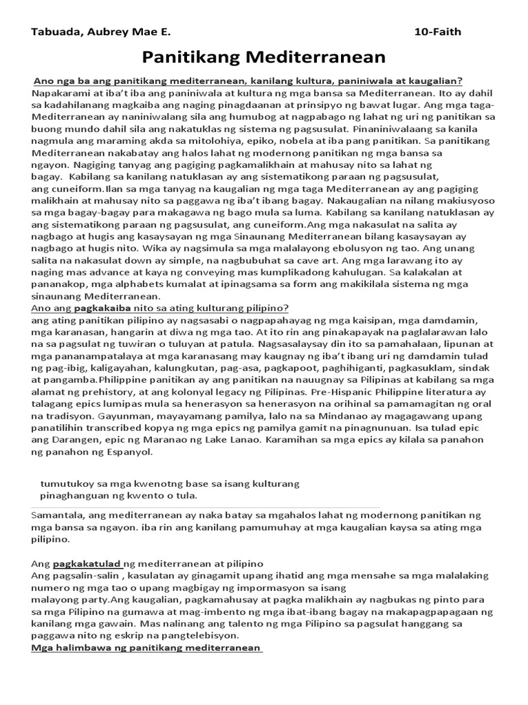 11062016 Filipino modyul 1 mga akdang pampanitikan ng mediterranean. 18082016 Gawa sa cuneiform ang sinaunang mga panitikan ng mga Mediterranean samantalang gawa naman sa baybayin ang mga sinaunang panitikan ng mga Pilipino. Mas marami ang panitikang Mediterranean kaysa sa panitikang Pilipino.