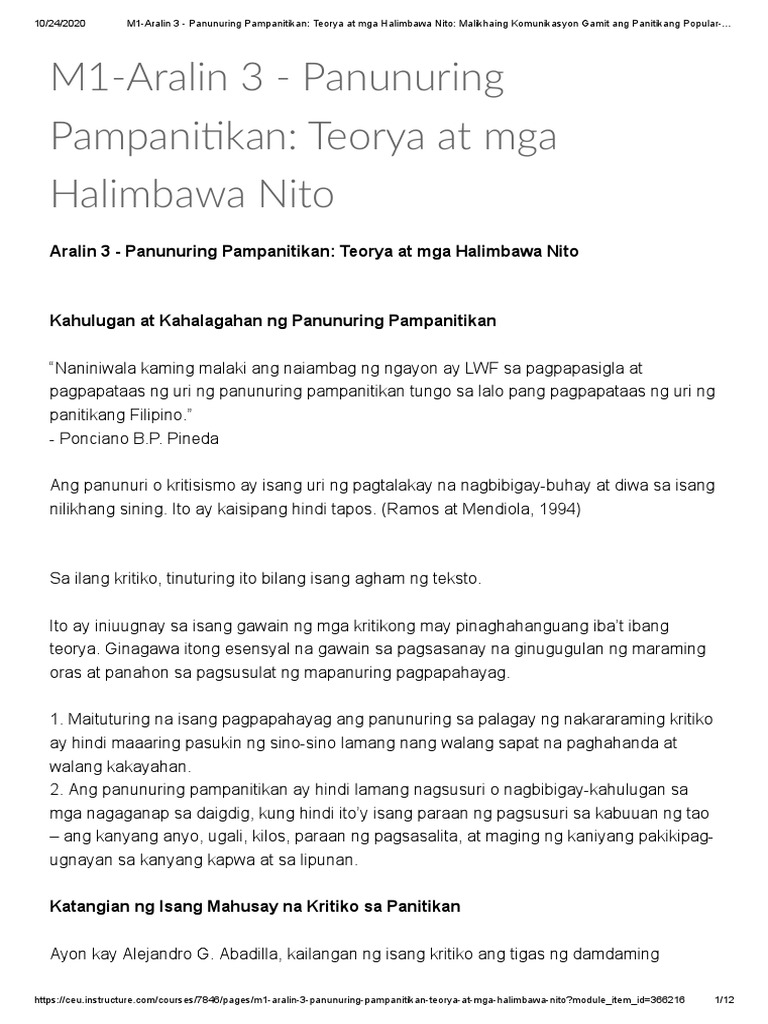 M1 Aralin 3 Panunuring Pampanitikan Teorya At Mga Halimbawa Nito Malikhaing Komunikasyon Gamit Ang Panitikang Popular Rrmorrondoz
