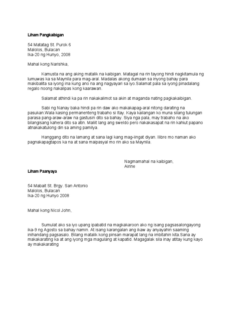Doc Filipino Liham Sharp Kath Academia Edu. Magpakita ng isang halimbawa ng liham mula sa isang kaibigan. Heto ang mga halimbawa.
