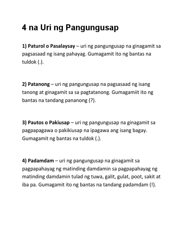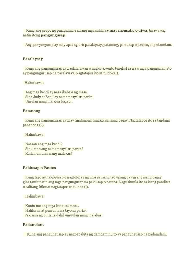 Aling bantas nagtatapos ang pangungusap na pasalaysay pautos at pakiusap. 3pakiusap umalis ka muna. Some of the worksheets for this concept are Pagsasanay sa filipino Pagsasanay sa filipino Halimbawa ng talata gamit ang pang uri Halimbawa ng talata gamit ang pang uri Kahalagahan ng wastong bantas Mga pang uri halimbawa at pangungusap Kahalagahan ng wastong bantas Mga pang uri halimbawa at pangungusap.