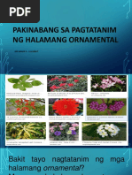 Mga halamang ornamental na nabubuhay sa lupa. Kapag sanga ng halaman ang itatanim piliin ang pinakamagulang na bahagi nito. Halamang Ornamental na Nabubuhay sa Tubig Ang mga halamang nabubuhay sa lupa ay maaaring itanim sa tamang makakasama nito samantalang ang mga halamang lumalago sa tubig ay maaring sa mga babasaging sisidlan sa loob ng tahanan o fishpond.
