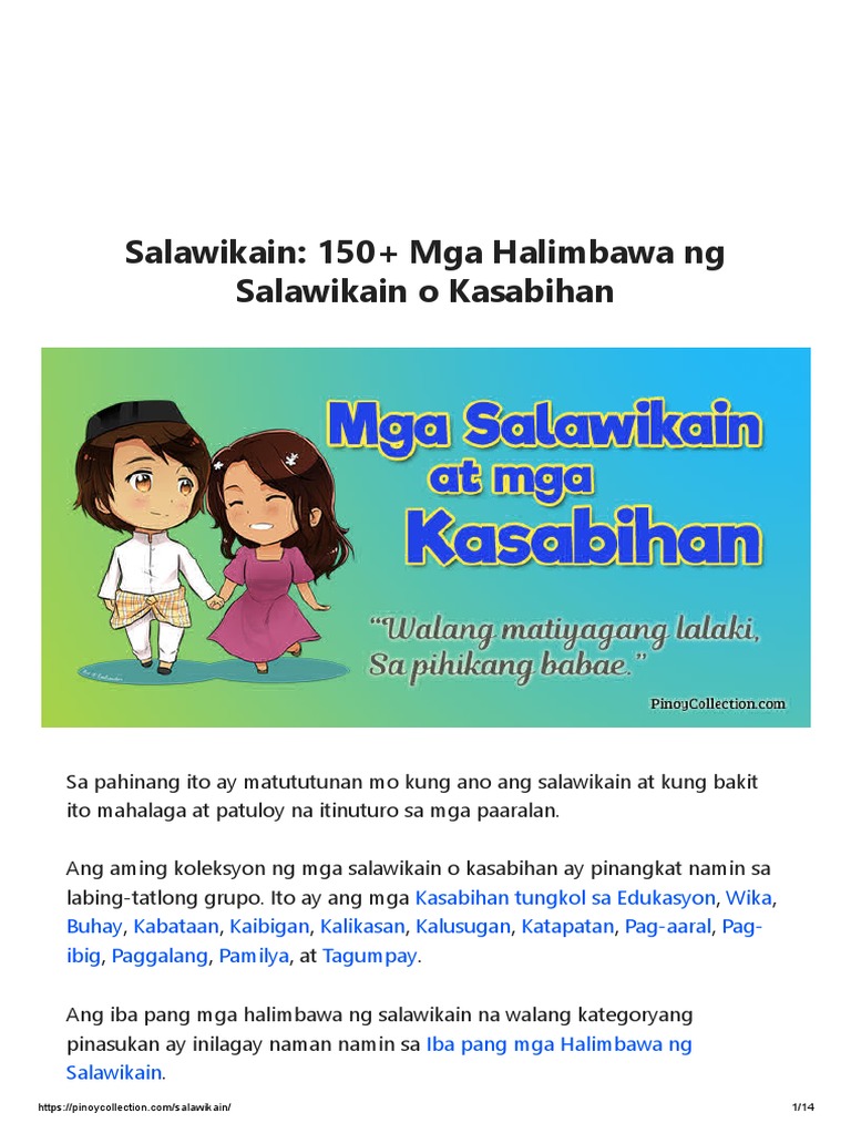 Salawikain 150 Mga Halimbawa Ng Salawikain O Kasabihan
