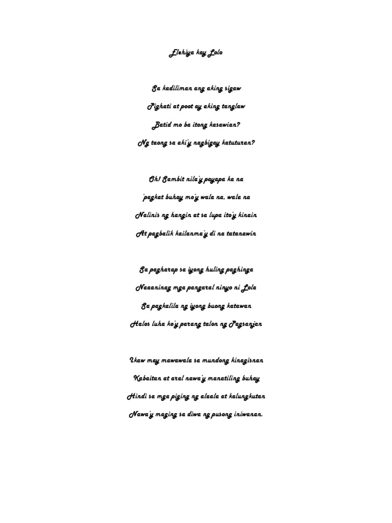 Ni huwag uyamin ng mapagsangyon o larawan lamang. Halimbawa Ng Tulang Elehiya. Aralin 33 Elehiya 2doc -.