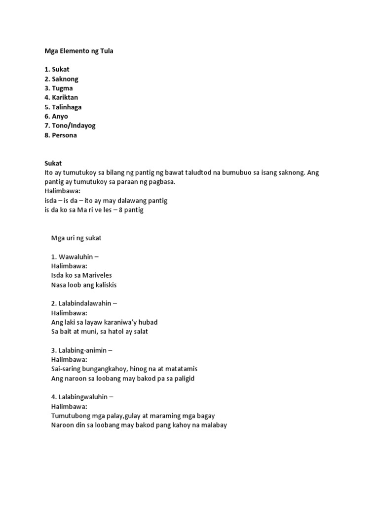 Kahulugan Elemento Uri at mga Halimbawa ng Tula. Atin lamang tandaan na ang isang saknong ay binubuo ng mga taludtod. Na tungo ng paa - kasama ang Poon.